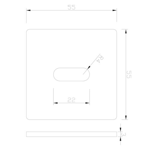 Sleutelrozet vierkant 55×3 mm ultra dunne rozet van 3mm gun metal PVD gecoat voor binnendeuren