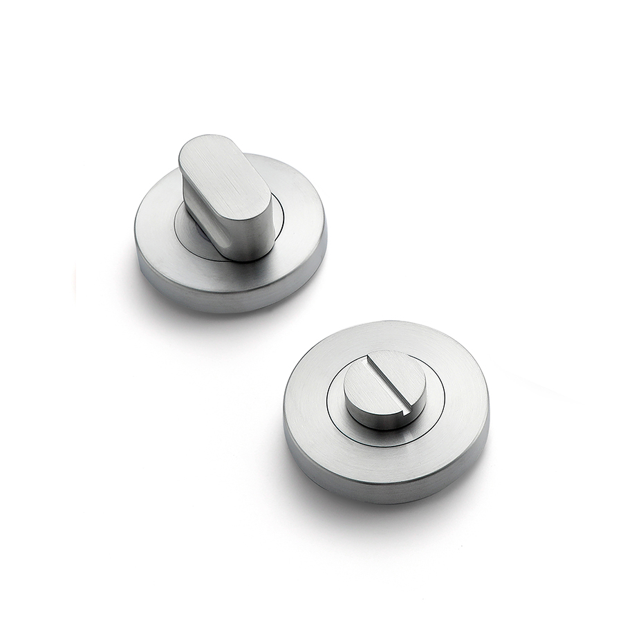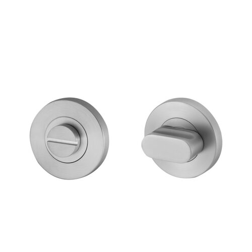 Dit type rozet met toilet-badkamersluiting is een subtiel vormgegeven, functioneel en stijlvol afwerkingsonderdeel voor binnendeuren die voorzien zijn van een toilet- of badkamerslot. Het product is vervaardigd uit hoogwaardig roestvast staal (RVS). De afwerking in geborsteld RVS zorgt voor een strakke, matte uitstraling die uitstekend past binnen een modern, industrieel of minimalistisch interieur.