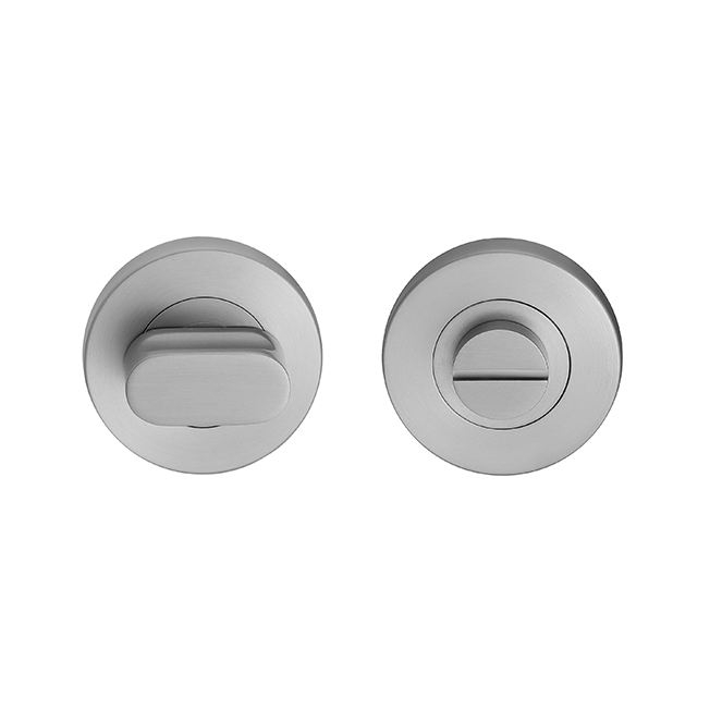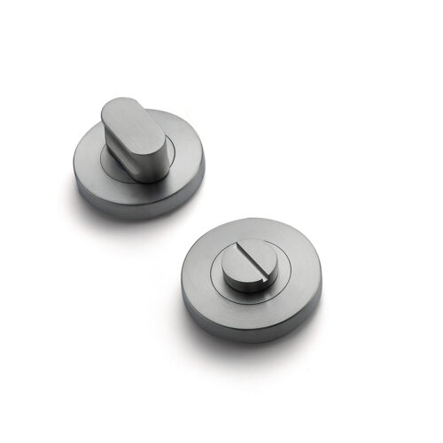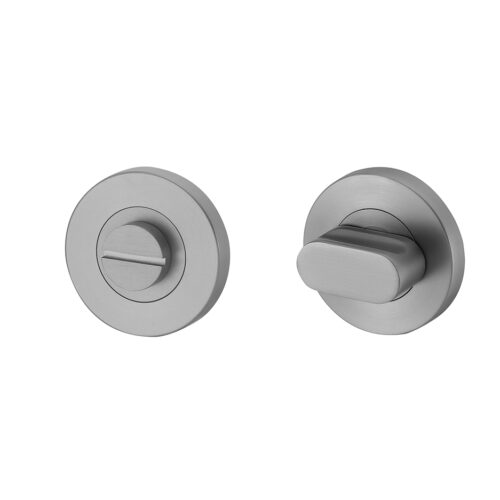 Dit type rozet met toilet-badkamersluiting is een subtiel vormgegeven, functioneel en stijlvol afwerkingsonderdeel voor binnendeuren die voorzien zijn van een toilet- of badkamerslot. Het product is vervaardigd uit hoogwaardig roestvast staal (RVS). De afwerking in gun metal zorgt voor een strakke, matte uitstraling die uitstekend past binnen een modern, industrieel of minimalistisch interieur.