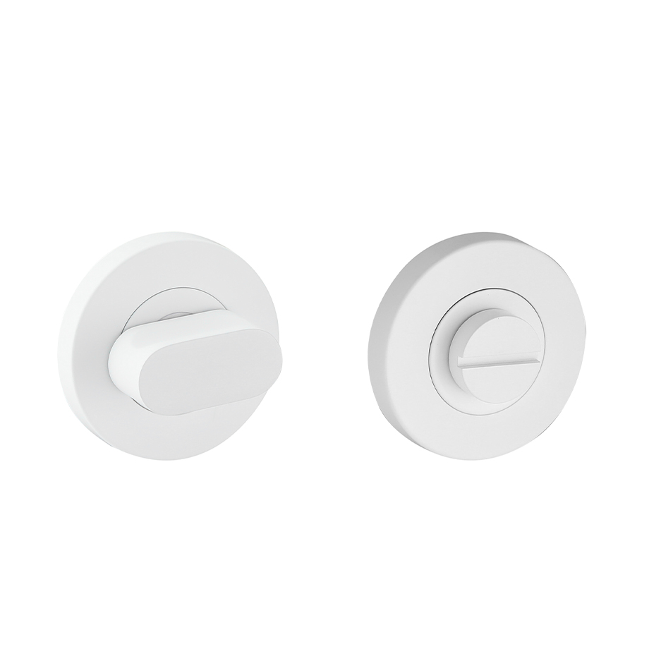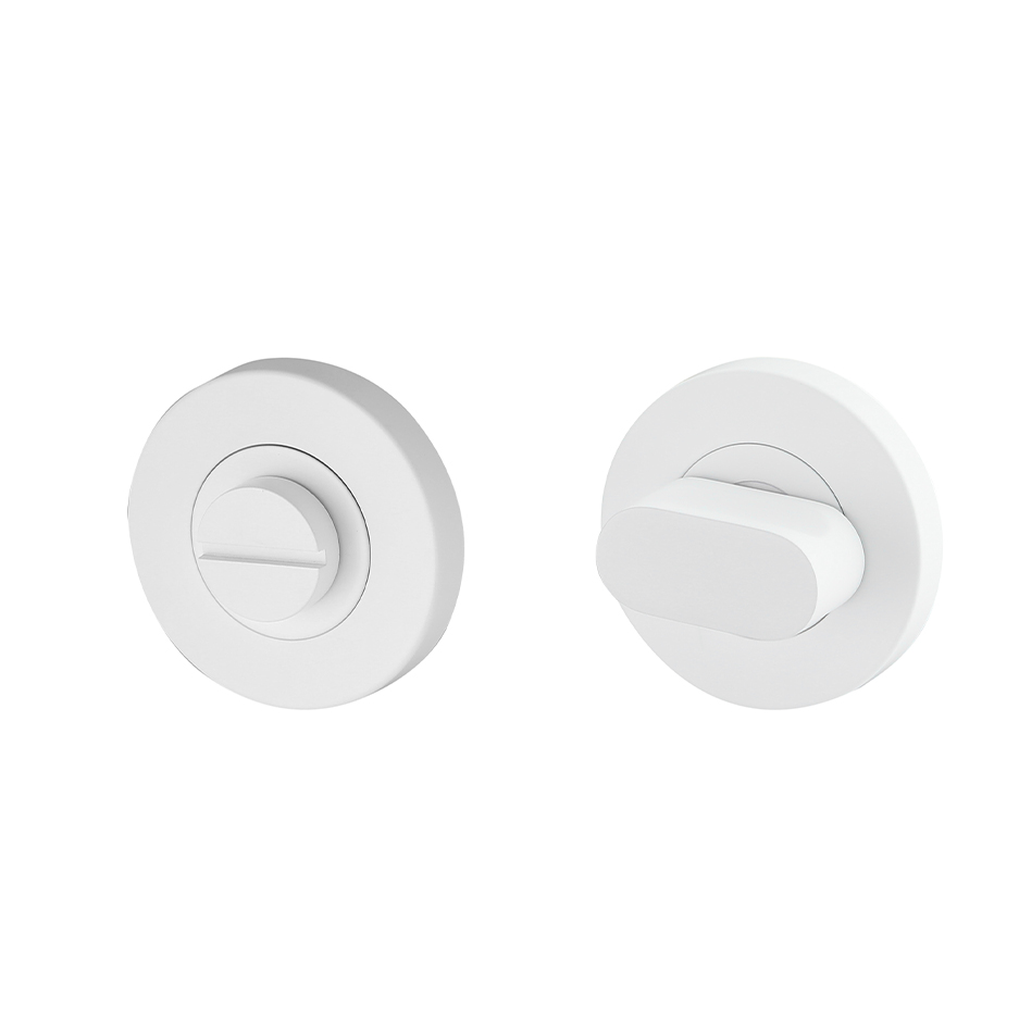 Dit type rozet met toilet-badkamersluiting is een subtiel vormgegeven, functioneel en stijlvol afwerkingsonderdeel voor binnendeuren die voorzien zijn van een toilet- of badkamerslot. Het product is vervaardigd uit hoogwaardig roestvast staal (RVS). De afwerking in mat wit zorgt voor een strakke, matte uitstraling die uitstekend past binnen een modern, industrieel of minimalistisch interieur.