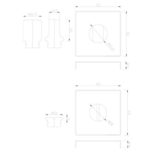 Sleutelrozet vierkant 53x53x8,9mm mat goud PVD gecoat