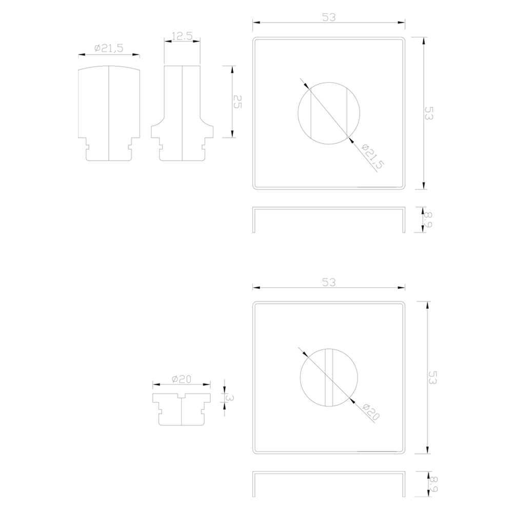 Cilinderrozet vierkant 53x53x8,9mm mat goud PVD gecoat