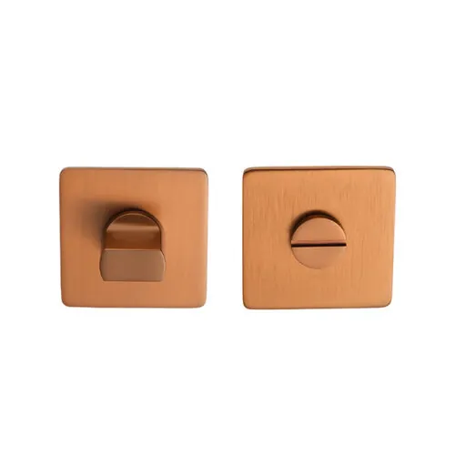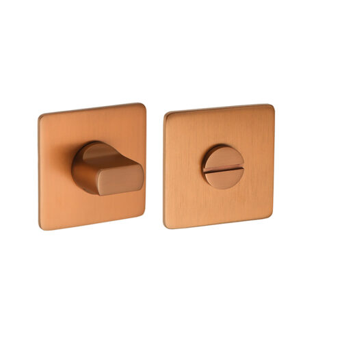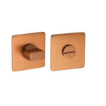 Vierkante toilet-badkamersluiting met rozet is een strak vormgegeven detail voor binnendeuren die zijn voorzien van een toilet of badkamerslot. Dankzij het minimalistische ontwerp en het ultradunne profiel van slechts 3 millimeter voegt dit beslag zich naadloos in moderne en ingetogen interieurs.