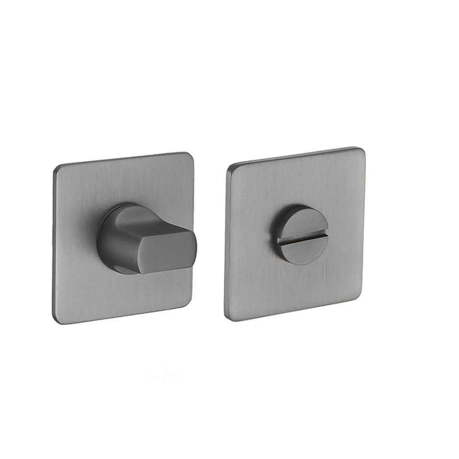 Vierkante toilet-badkamersluiting met rozet is een strak vormgegeven detail voor binnendeuren die zijn voorzien van een toilet of badkamerslot. Dankzij het minimalistische ontwerp en het ultradunne profiel van slechts 3 millimeter voegt dit beslag zich naadloos in moderne en ingetogen interieurs.
