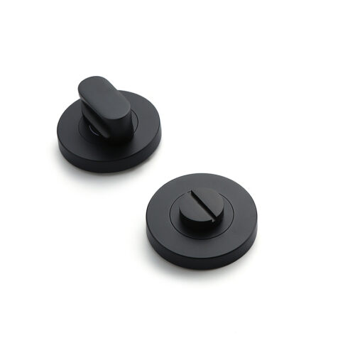 Dit type rozet met toilet-badkamersluiting is een subtiel vormgegeven, functioneel en stijlvol afwerkingsonderdeel voor binnendeuren die voorzien zijn van een toilet- of badkamerslot. Het product is vervaardigd uit hoogwaardig roestvast staal (RVS). De afwerking in mat zwart zorgt voor een strakke, matte uitstraling die uitstekend past binnen een modern, industrieel of minimalistisch interieur.