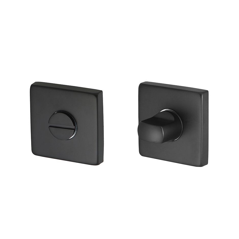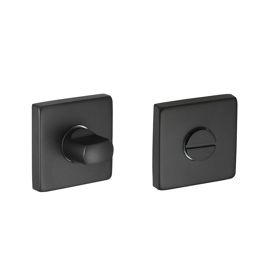 Vierkante toilet-badkamersluiting met rozet is een stijlvol vormgegeven detail voor binnendeuren met een toilet- of badkamerslot. Het ontwerp is strak en tijdloos en dankzij de iets dikkere opbouw van 8,9 millimeter ontstaat een robuustere uitstraling die toch elegant blijft ogen binnen moderne en ingetogen interieurs.
