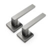 De kruk is haaks gemonteerd op een geveerde vierkante rozet van 53×53 mm met een slanke dikte van slechts 9 mm. Dit zorgt voor een naadloze aansluiting op moderne interieurs waarin vorm en functie samengaan.