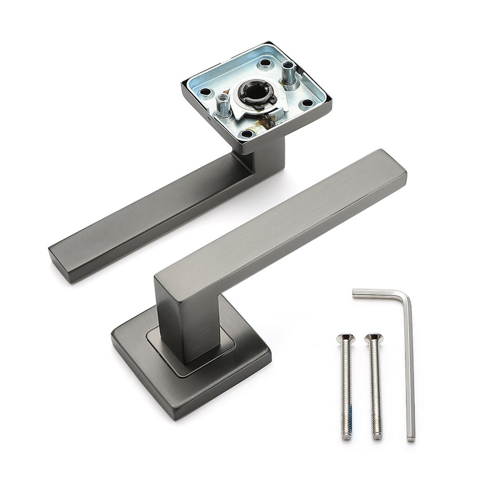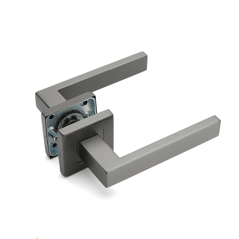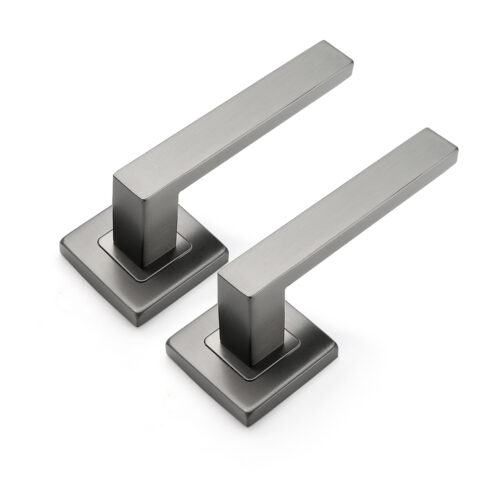 Deurkruk Alice vierkant 20mm haaks op vierkant rozet gun metal PVD gecoat voor binnendeuren