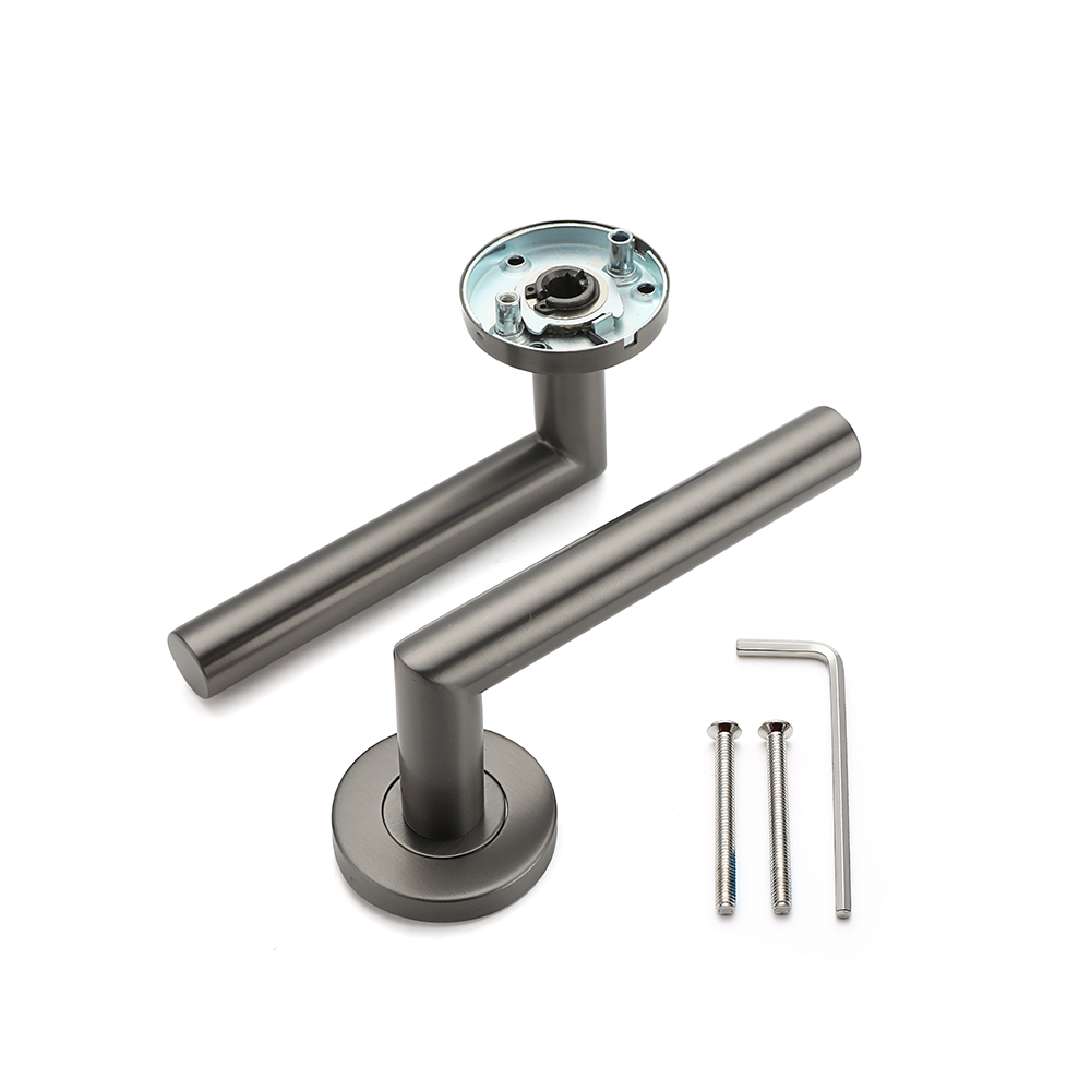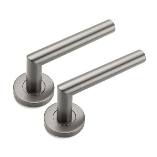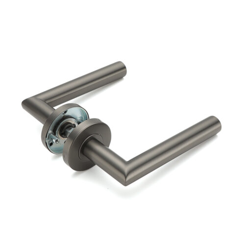 Deurkruk Amari 20 mm rond haaks op rozet geborsteld gun metal PVD gecoat voor binnendeuren