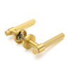 Gemaakt van hoogwaardig roestvrij staal afgewerkt in de kleur mat goud biedt de Ambra kruk niet alleen een tijdloze en elegante uitstraling maar ook een uitstekende weerstand tegen slijtage. De geveerde rozet voorkomt dat de kruk gaat doorhangen wat deze serie bijzonder geschikt maakt voor intensief dagelijks gebruik.