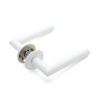 Deurkruk Celia rond 20mm haaks op ultra dunne rozetten van 3mm mat wit PVD gecoat voor binnendeuren
