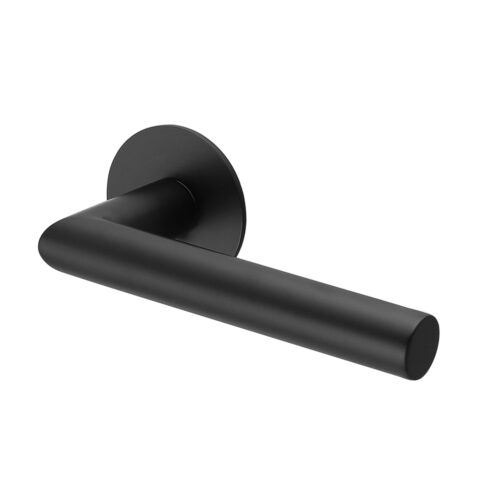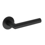 Deurkruk Celia rond 20mm haaks op ultra dunne rozetten van 3mm mat zwart PVD gecoat voor binnendeuren