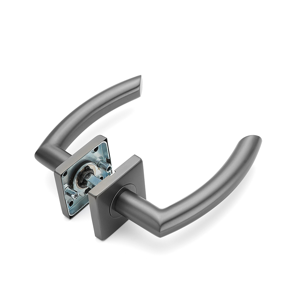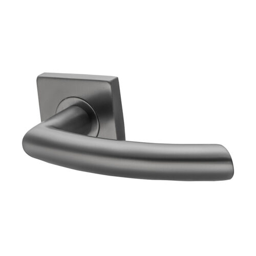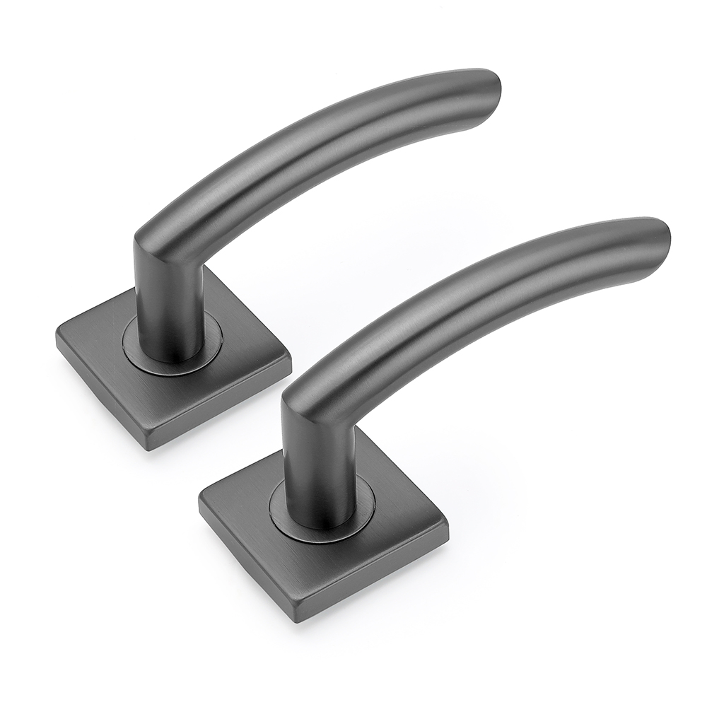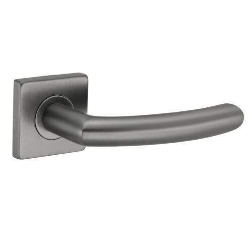 Deurkruk Donna rond 20mm haaks op vierkant rozet geborsteld gun metal PVD gecoat voor binnendeuren