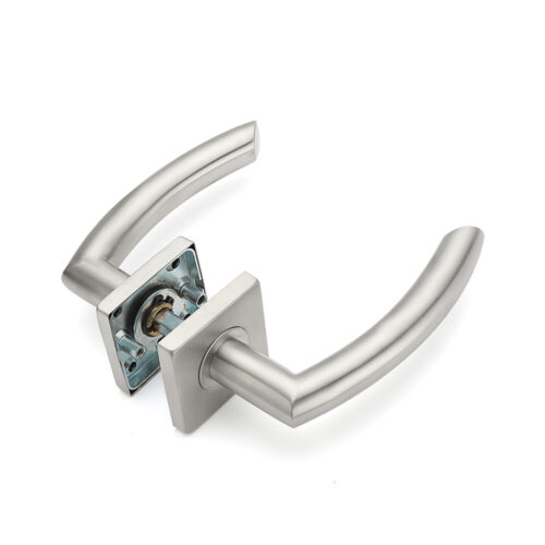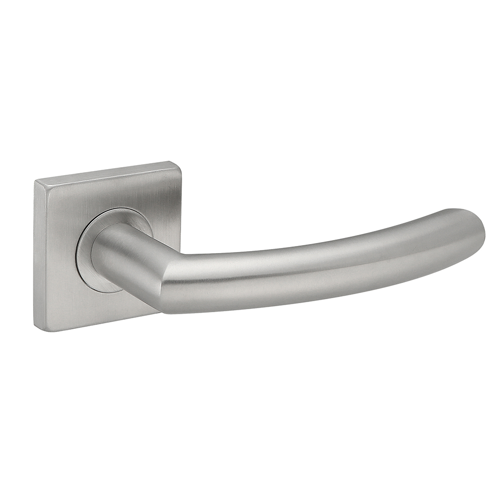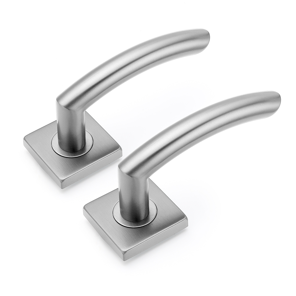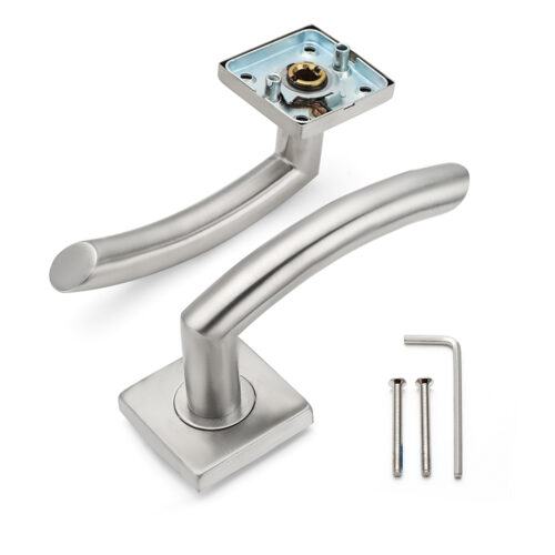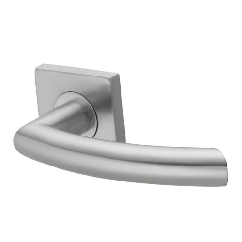 Deze elegante deurkruk uit de Donna serie met vierkante rozet biedt een strak en modern design in combinatie met hoogwaardige duurzaamheid. Ideaal voor binnendeuren in zowel woon als werkomgevingen. De gebogen hendel met een diameter van 20 mm ligt prettig in de hand en is haaks gemonteerd op een geveerde vierkante rozet van 53×53 mm en slechts 9 mm dik wat zorgt voor een minimalistische en verfijnde uitstraling.