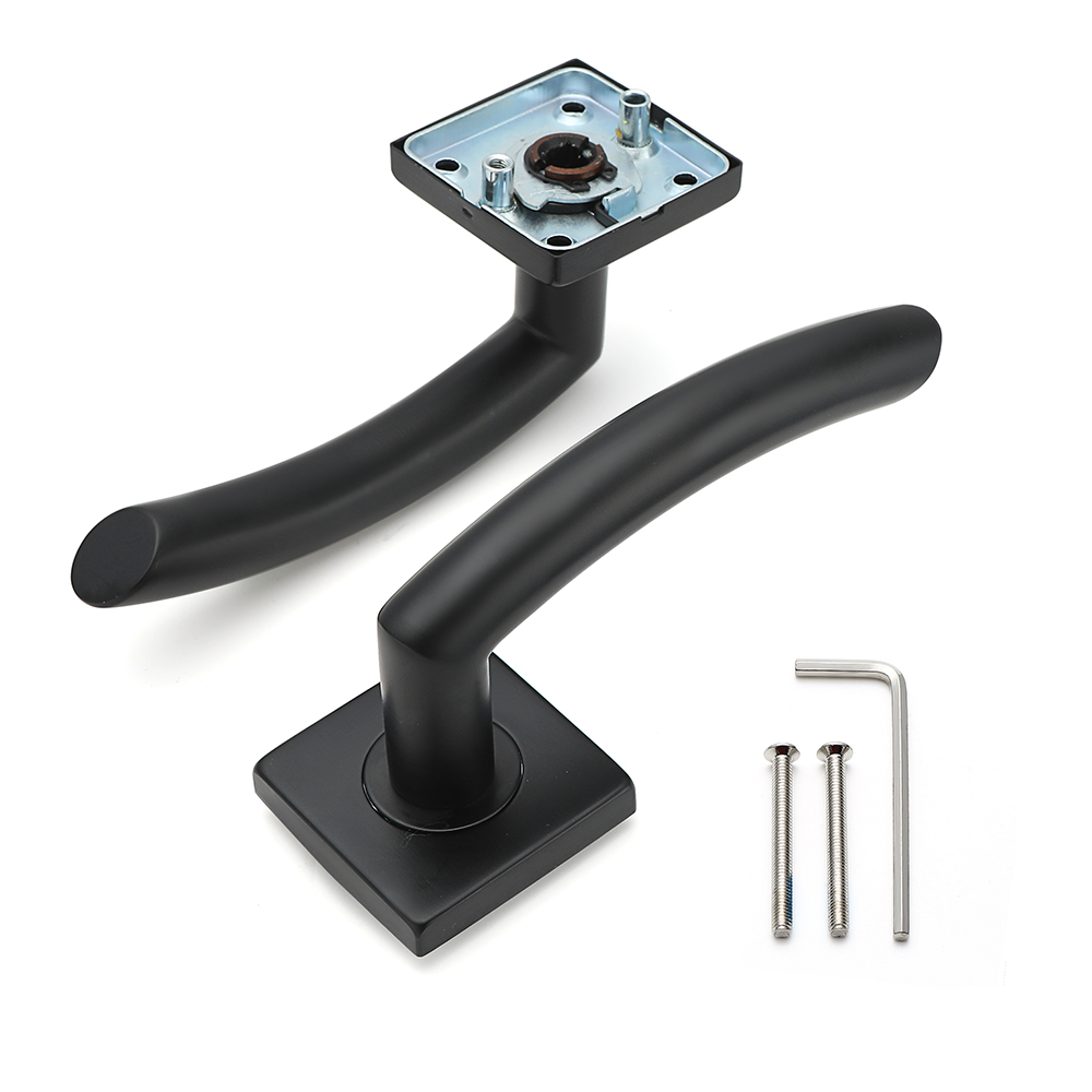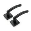 Deze elegante deurkruk uit de Donna serie met vierkante rozet biedt een strak en modern design in combinatie met hoogwaardige duurzaamheid. Ideaal voor binnendeuren in zowel woon als werkomgevingen. De gebogen hendel met een diameter van 20 mm ligt prettig in de hand en is haaks gemonteerd op een geveerde vierkante rozet van 53×53 mm en slechts 9 mm dik wat zorgt voor een minimalistische en verfijnde uitstraling.