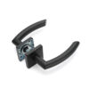 De montage gebeurt met een subtiele inbusschroef aan de onderzijde van de meegeleverde stift, wat het design strak en ononderbroken houdt. Vervaardigd uit geborsteld roestvrij staal afgewerkt in de kleur mat zwart biedt deze kruk een matte, luxe afwerking en uitstekende slijtvastheid. Dankzij de geïntegreerde veermechaniek keert de kruk altijd netjes terug in horizontale positie. Perfect voor intensief dagelijks gebruik.