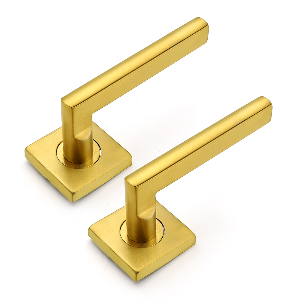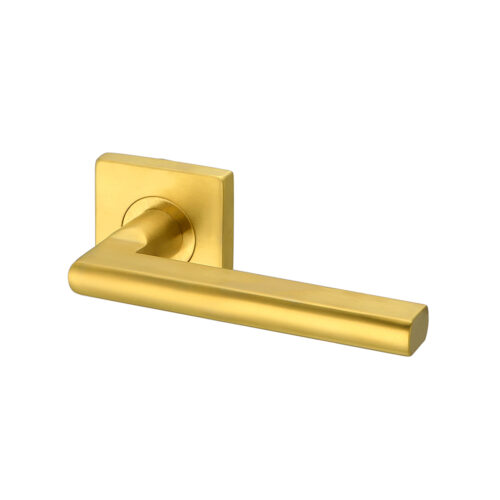 Deurkruk Emilia 20mm haaks op vierkant rozet geborsteld messing PVD gecoat voor binnendeuren