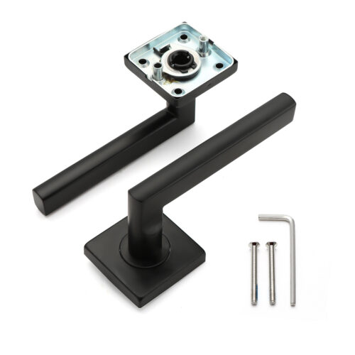 De hendel is haaks gemonteerd op een geveerde vierkante rozet van 53×53 mm met een slanke dikte van slechts 9 mm. Dit zorgt voor een minimalistisch en elegant silhouet dat moeiteloos aansluit bij uiteenlopende interieurstijlen.