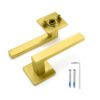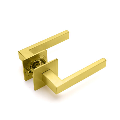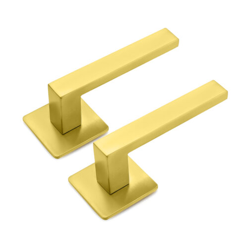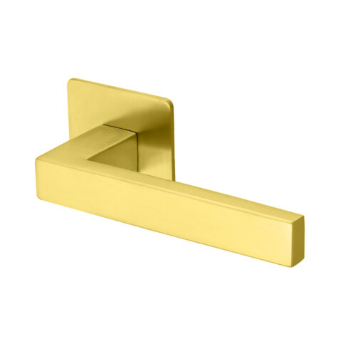 Deurkruk Enzo vierkant 20mm haaks op vierkant ultra dunne rozet van 3mm geborsteld messing PVD gecoat voor binnendeuren