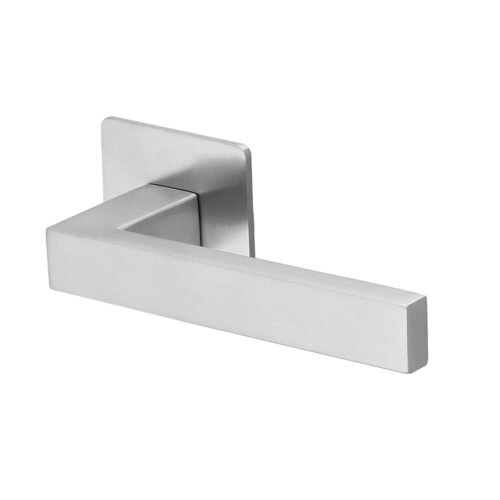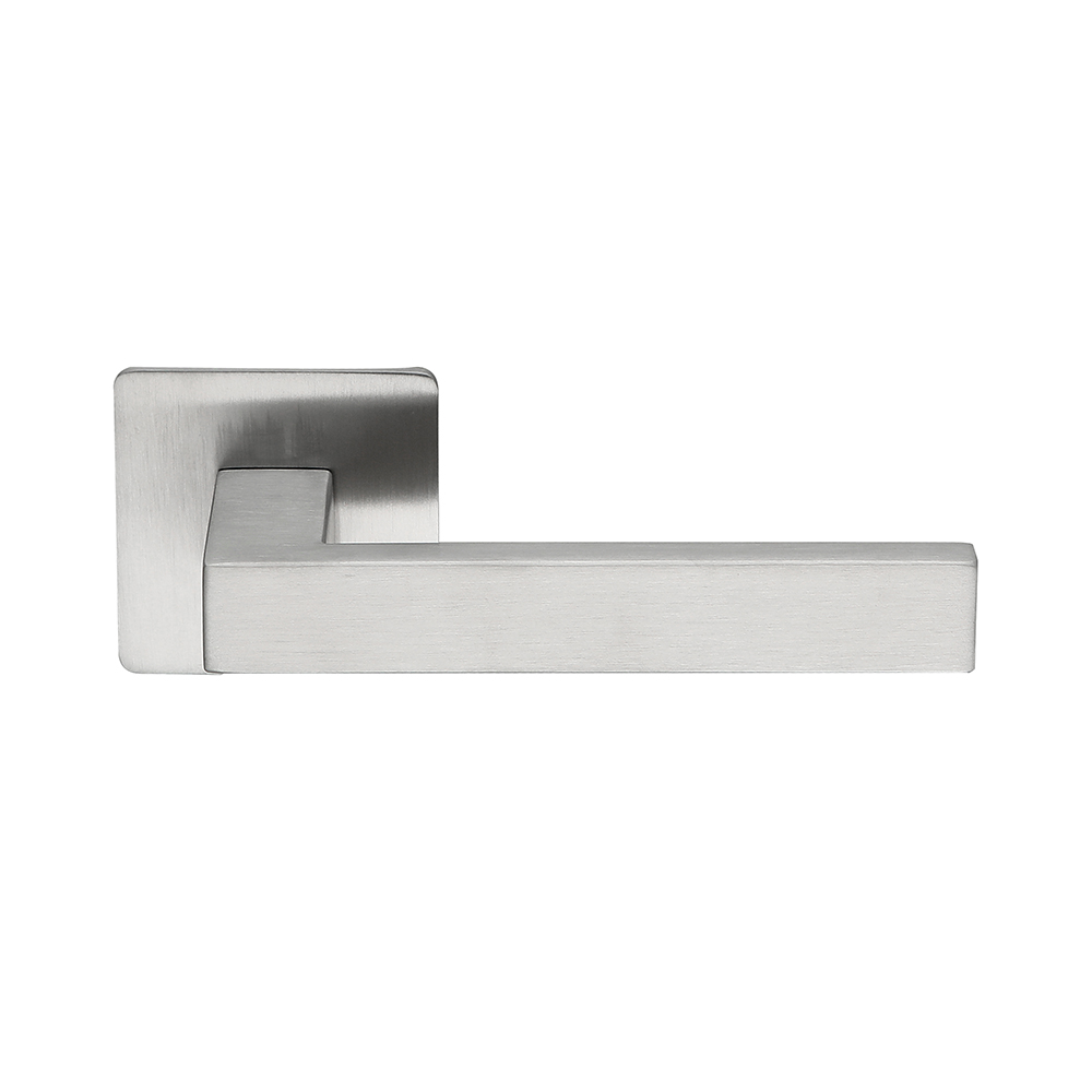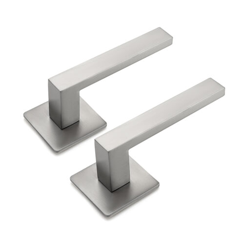 De Enzo deurkruk staat voor verfijnd minimalisme en is perfect geschikt voor binnendeuren in moderne woningen en stijlvolle kantooromgevingen. De rechthoekige platte hendel van 20 mm breed vormt een strak geheel met de haakse bevestiging op een ultra dunne vierkante geveerde rozet van 55 x 55 mm en 3 mm dik. Dit geeft de kruk een subtiele maar elegante uitstraling.