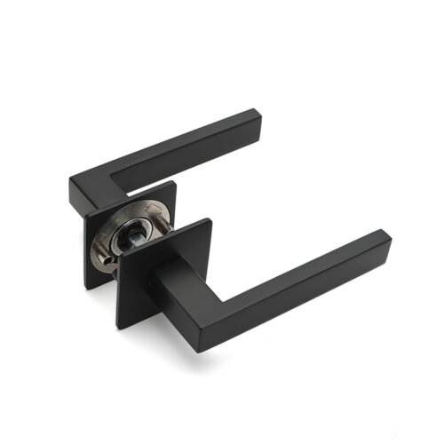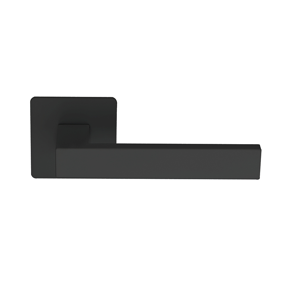 Deurkruk Enzo vierkant 20mm haaks op vierkant ultra dunne rozet van 3mm mat zwart PVD gecoat voor binnendeuren