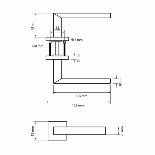 De Enzo deurkruk staat voor verfijnd minimalisme en is perfect geschikt voor binnendeuren in moderne woningen en stijlvolle kantooromgevingen. De rechthoekige platte hendel van 20 mm breed vormt een strak geheel met de haakse bevestiging op een ultra dunne vierkante geveerde rozet van 55 x 55 mm en 3 mm dik. Dit geeft de kruk een subtiele maar elegante uitstraling.
