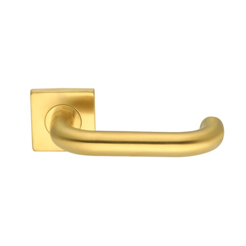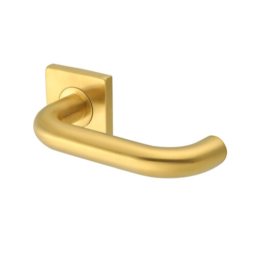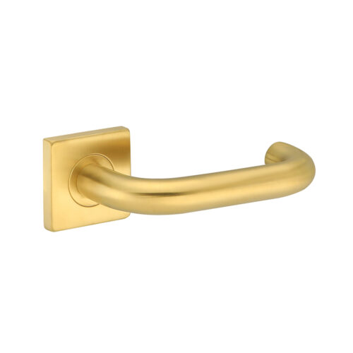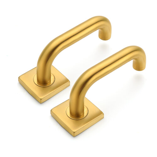 Deurkruk Leonardo rond model u 20mm haaks op vierkant rozet geborsteld messing PVD gecoat voor binnendeuren