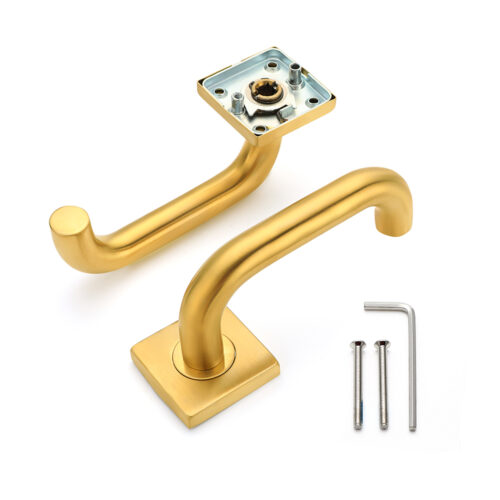 De montage gebeurt met een subtiele inbusschroef aan de onderzijde van de meegeleverde stift waardoor het design strak en ononderbroken blijft. Vervaardigd uit roestvrij staal afgewerkt in de kleur geborsteld messing biedt deze deurkruk een matte, luxe afwerking en uitstekende slijtvastheid. Dankzij het geïntegreerde veermechanisme keert de kruk altijd netjes terug in horizontale positie perfect voor intensief dagelijks gebruik.