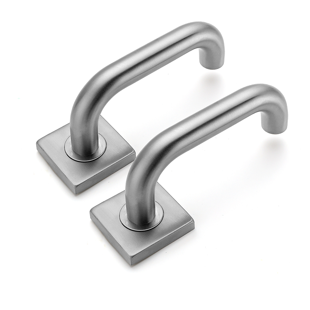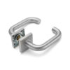 Deurkruk Leonardo rond model u 20mm haaks op vierkant rozet geborsteld RVS