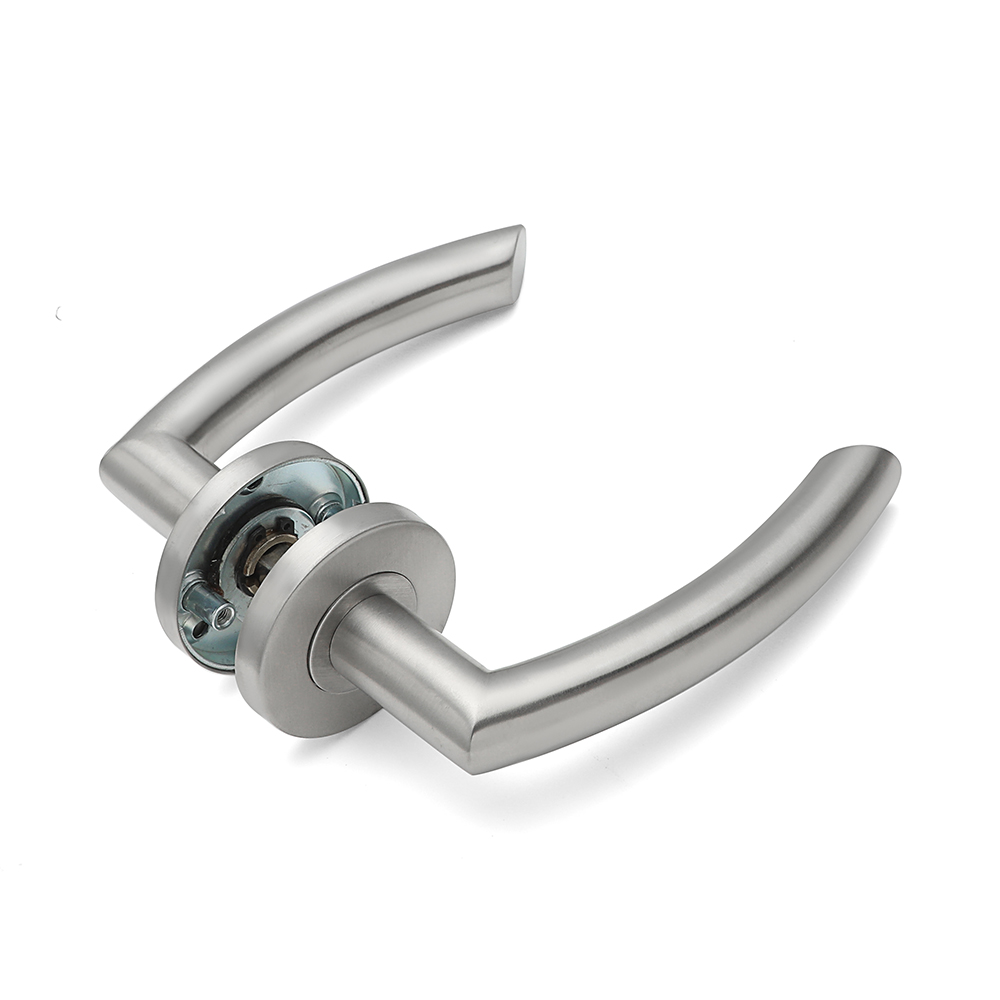 Deurkruk Luca rond 20mm haaks op rozet geborsteld RVS voor binnendeuren