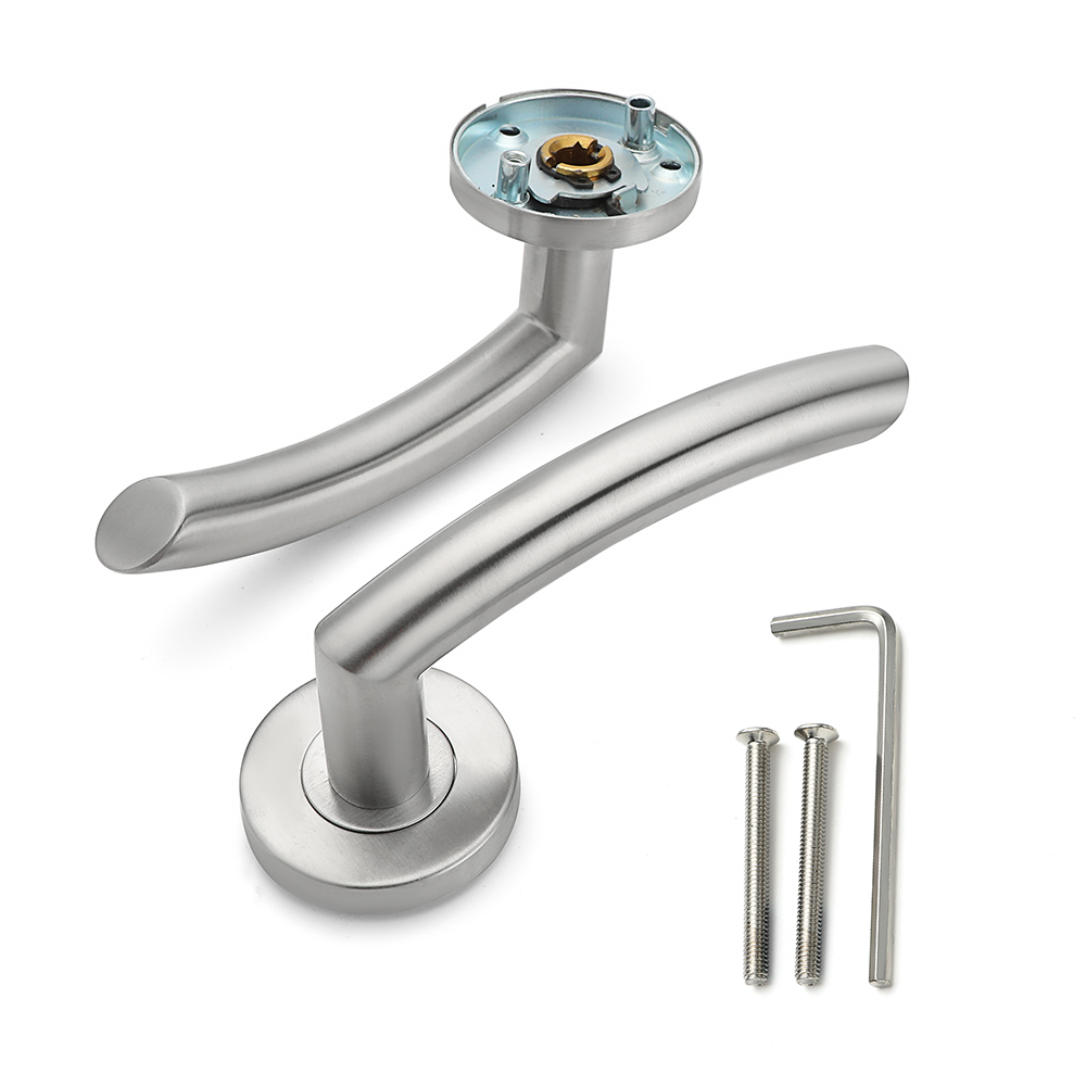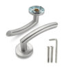 De inbusschroef wordt subtiel aan de onderzijde in de meegeleverde stift bevestigd, wat zorgt voor een strak en ononderbroken design. Gemaakt van geborsteld RVS biedt deze kruk een luxe, matte afwerking en uitstekende slijtvastheid. Dankzij de geveerde rozet blijft de kruk netjes in positie, ideaal voor dagelijks intensief gebruik.