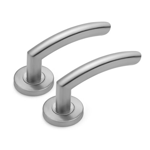 Deze stijlvolle deurkruk uit de serie Luca met ronde rozet combineert elegant design met duurzame kwaliteit en is ideaal voor binnendeuren in zowel woningen als kantoren. De licht gebogen hendel (Ø 20 mm) zorgt voor een comfortabele grip en wordt haaks gemonteerd op een geveerde ronde rozet met een diameter van 55 mm en een dikte van slechts 9 mm voor een verfijnde en moderne uitstraling.