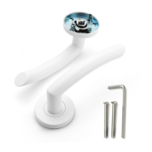 De inbusschroef wordt subtiel aan de onderzijde in de meegeleverde stift bevestigd, wat zorgt voor een strak en ononderbroken design. Gemaakt van RVS afgewerkt in de kleur mat wit biedt deze kruk een luxe, matte afwerking en uitstekende slijtvastheid. Dankzij de geveerde rozet blijft de kruk netjes in positie, ideaal voor dagelijks intensief gebruik.