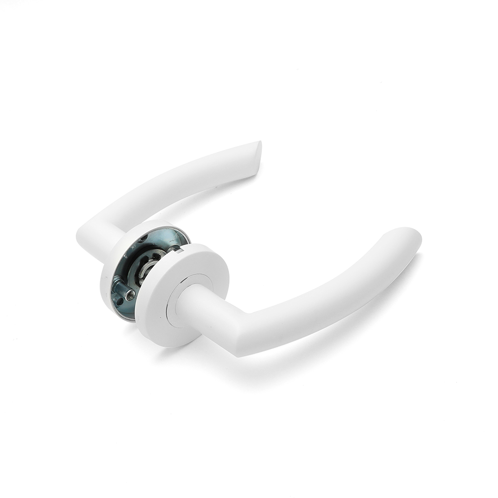 Deurkruk Luca rond 20mm haaks op rozet mat wit PVD gecoat voor binnendeuren