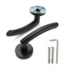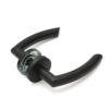De inbusschroef wordt subtiel aan de onderzijde in de meegeleverde stift bevestigd, wat zorgt voor een strak en ononderbroken design. Gemaakt van RVS afgewerkt in de kleur mat zwart biedt deze kruk een luxe, matte afwerking en uitstekende slijtvastheid. Dankzij de geveerde rozet blijft de kruk netjes in positie, ideaal voor dagelijks intensief gebruik.