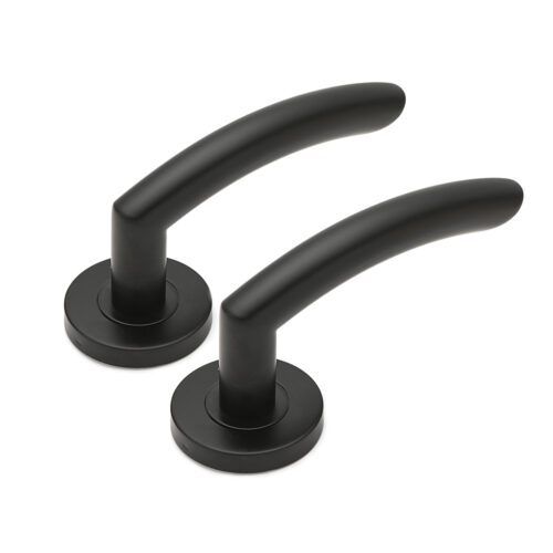 Deurkruk Luca rond 20mm haaks op rozet mat zwart PVD gecoat voor binnendeuren