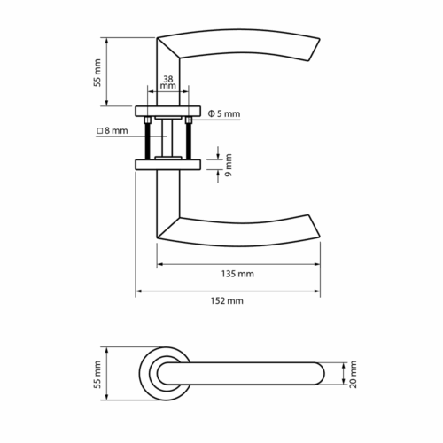 Deze stijlvolle deurkruk uit de serie Luca met ronde rozet combineert elegant design met duurzame kwaliteit en is ideaal voor binnendeuren in zowel woningen als kantoren. De licht gebogen hendel (Ø 20 mm) zorgt voor een comfortabele grip en wordt haaks gemonteerd op een geveerde ronde rozet met een diameter van 55 mm en een dikte van slechts 9 mm voor een verfijnde en moderne uitstraling.