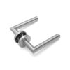 Deurkruk Luna rond 20mm haaks met een schroefrozet geborsteld RVS voor binnendeuren