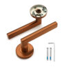 De montage is discreet uitgevoerd met een inbusschroef aan de onderzijde van de bijgeleverde stift zodat het design strak en ononderbroken blijft. Vervaardigd uit roestvrij staal afgewerkt in brons geborsteld beschikt de Stella-kruk over een matte, luxe afwerking en uitstekende slijtvastheid. Dankzij het geïntegreerde veermechanisme keert de deurkruk na gebruik altijd automatisch terug naar de horizontale positie – ideaal voor intensief dagelijks gebruik.