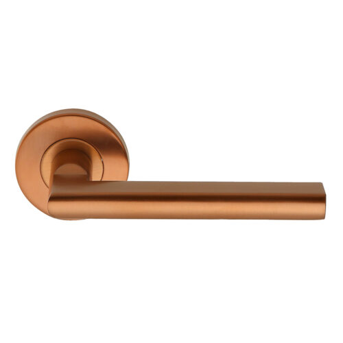 Deurkruk Stella rond 20mm haaks op rozet brons geborsteld PVD gecoat voor binnendeuren