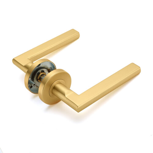 De montage is discreet uitgevoerd met een inbusschroef aan de onderzijde van de bijgeleverde stift zodat het design strak en ononderbroken blijft. Vervaardigd uit roestvrij staal afgewerkt in mat goud beschikt de Stella-kruk over een matte, luxe afwerking en uitstekende slijtvastheid. Dankzij het geïntegreerde veermechanisme keert de deurkruk na gebruik altijd automatisch terug naar de horizontale positie – ideaal voor intensief dagelijks gebruik.