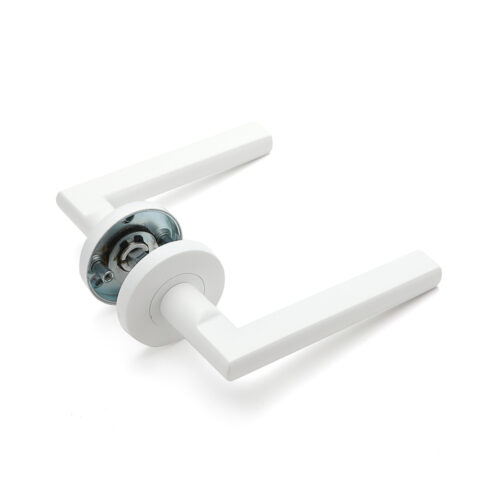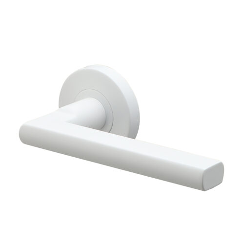 Deurkruk Stella rond 20mm haaks op rozet mat wit PVD gecoat voor binnendeuren
