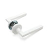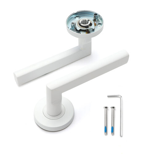 De montage is discreet uitgevoerd met een inbusschroef aan de onderzijde van de bijgeleverde stift zodat het design strak en ononderbroken blijft. Vervaardigd uit roestvrij staal afgewerkt in mat wit beschikt de Stella-kruk over een matte, luxe afwerking en uitstekende slijtvastheid. Dankzij het geïntegreerde veermechanisme keert de deurkruk na gebruik altijd automatisch terug naar de horizontale positie – ideaal voor intensief dagelijks gebruik.
