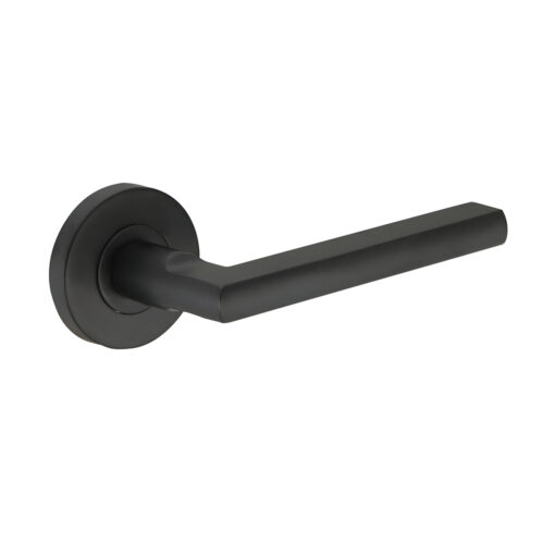 Deurkruk Stella rond 20mm haaks op rozet mat zwart PVD gecoat voor binnendeuren