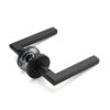 De hendel is haaks gemonteerd op een ronde geveerde rozet met een diameter van 55 mm en een slanke dikte van slechts 9 mm. Dit zorgt voor een minimalistisch en elegant silhouet dat moeiteloos aansluit bij diverse interieurstijlen.