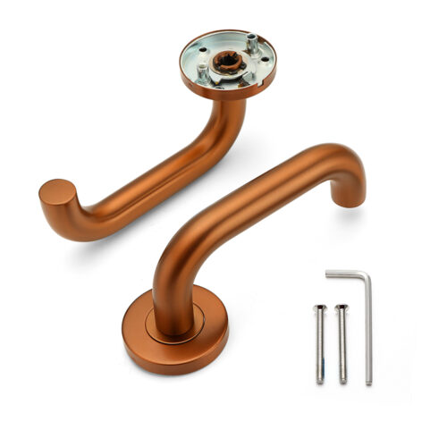 Deze elegante deurkruk uit de Valentina serie met ronde rozet biedt een stijlvol en eigentijds design in combinatie met hoogwaardige duurzaamheid. Ideaal voor binnendeuren in zowel woon als werkomgevingen. De gebogen hendel met een diameter van 20 mm ligt prettig in de hand en is haaks gemonteerd op een geveerde ronde rozet met een diameter van 55 mm en een dikte van slechts 9 mm. Dit zorgt voor een minimalistische en verfijnde uitstraling die moeiteloos past binnen diverse interieurstijlen.