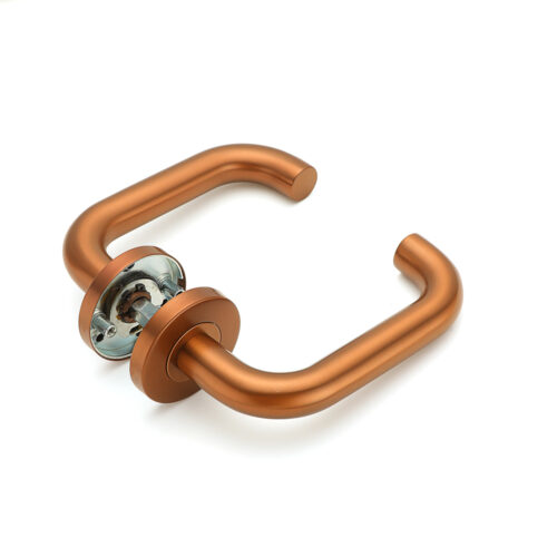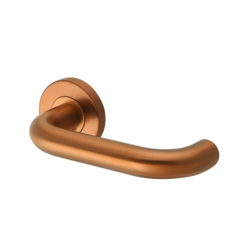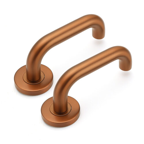 Deurkruk Valentina rond model u 20mm haaks op rozet brons geborsteld PVD gecoat voor binnendeuren