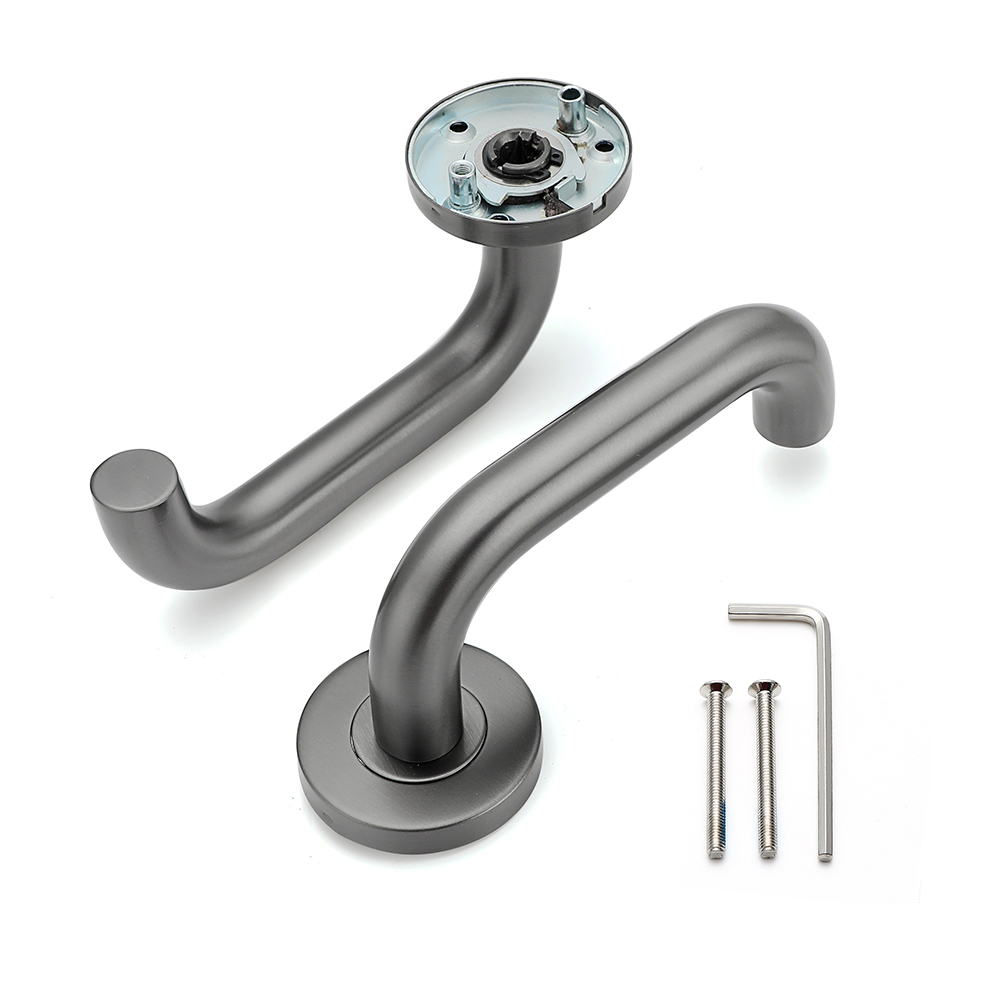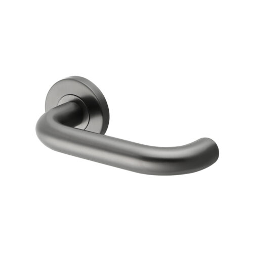 Deurkruk Valentina rond model u 20mm haaks op rozet geborsteld gun metal PVD gecoat voor binnendeuren