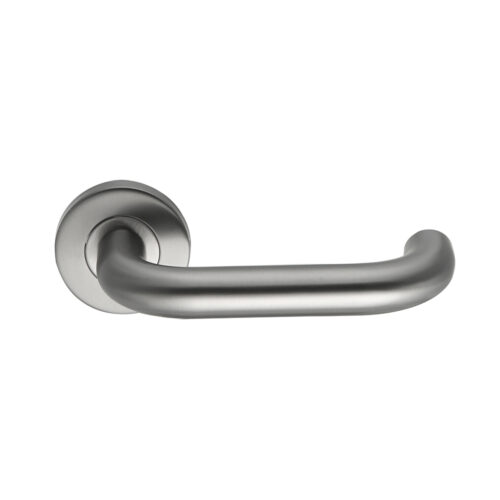 Deze elegante deurkruk uit de Valentina serie met ronde rozet biedt een stijlvol en eigentijds design in combinatie met hoogwaardige duurzaamheid. Ideaal voor binnendeuren in zowel woon als werkomgevingen. De gebogen hendel met een diameter van 20 mm ligt prettig in de hand en is haaks gemonteerd op een geveerde ronde rozet met een diameter van 55 mm en een dikte van slechts 9 mm. Dit zorgt voor een minimalistische en verfijnde uitstraling die moeiteloos past binnen diverse interieurstijlen.