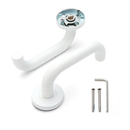 De montage gebeurt met een subtiele inbusschroef aan de onderzijde van de meegeleverde stift wat het design strak en ononderbroken houdt. Vervaardigd uit roestvrij staal afgewerkt in de kleur mat wit biedt deze deurkruk een matte, luxe afwerking en uitstekende slijtvastheid. Dankzij het geïntegreerde veermechanisme keert de kruk altijd netjes terug in horizontale positie perfect voor intensief dagelijks gebruik.